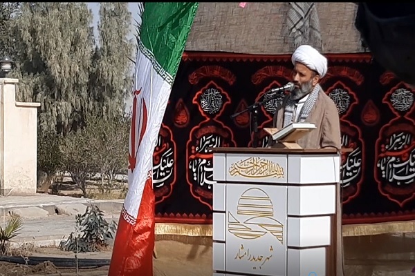 حجتالاسلام والمسلمین گزمه، امام جمعه شهرستان هامون، در مراسم گرامیداشت اولین سالگرد تدفین