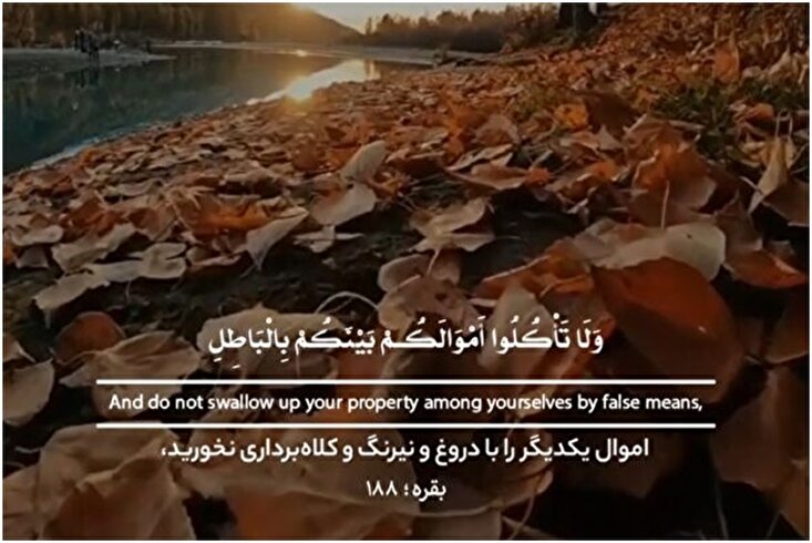 IQNA - Kada ku ci dukiyõyinku a tsakãninku da ƙarya, kuma ku sãdu da ita zuwa ga mahukunta dõmin ku ci wani yanki daga dũkiyõyin mutãne da zunubi alhãli kuwa kũ, kuna sane.